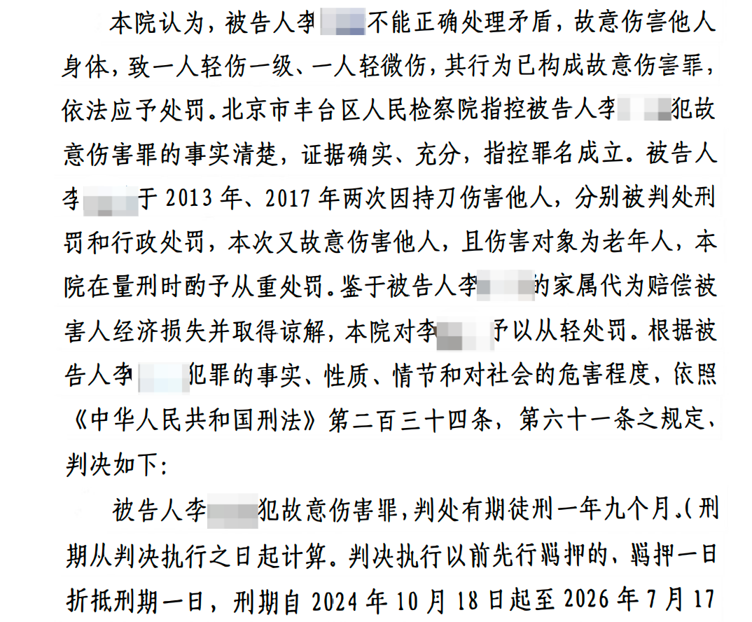 法院以為,李某居心損害罪罪名成立,聯合李某此前有兩次傷人前科、本次損害對象為老年人,從重處分,家眷代為賠還償付并包養網獲得被害人體諒從輕處分,法院判決李某有期徒刑一年九個月。
