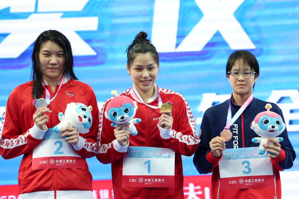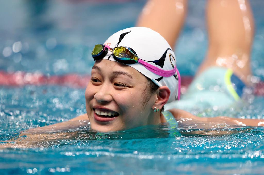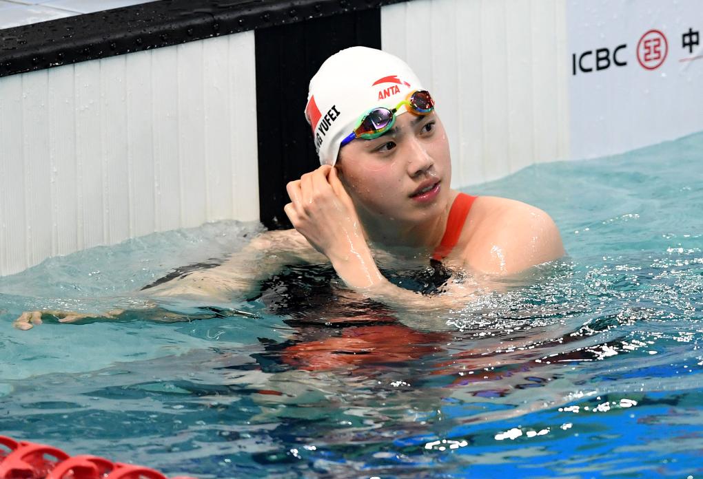 張雨霏在男子50米不受拘束泳決賽后。新華社記者 李紫恒 攝