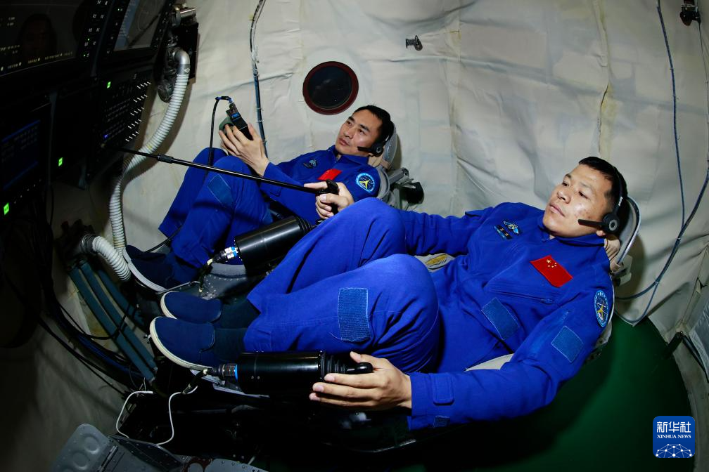 神船二十號航天員乘組在停止腦電操縱練習(2025年2月21日攝)。新華社發(徐部 攝)