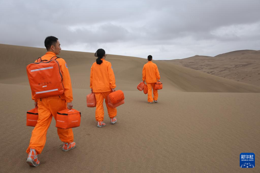 神船二十號航天員陳中瑞(左)在餐與加入戈壁保存練習(2022年6月2包養網1日攝)。新華社發(周程博 攝)